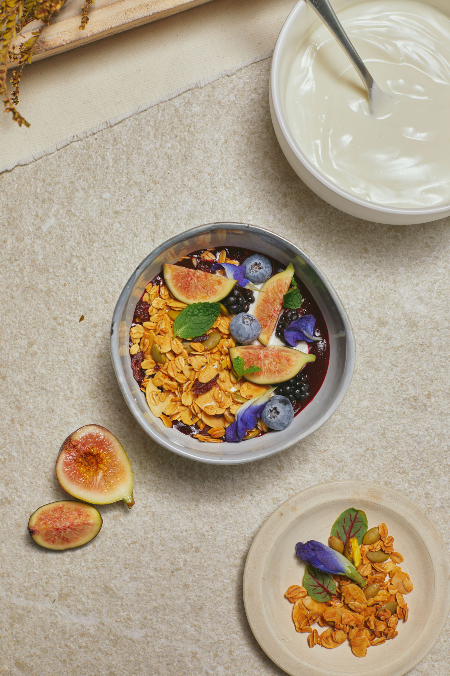 Who knew eating healthy can be fun and exciting? With our special DIY yogurt set, you can create your very own yogurt bowl to your liking. We currently offer two options: dairy vanilla greek yogurt and vegan coconut yogurt. Add some of our homemade sauce and granola to the mix and top with some fruits for a splash of color. Tap into your creative side, and create your own masterpiece!